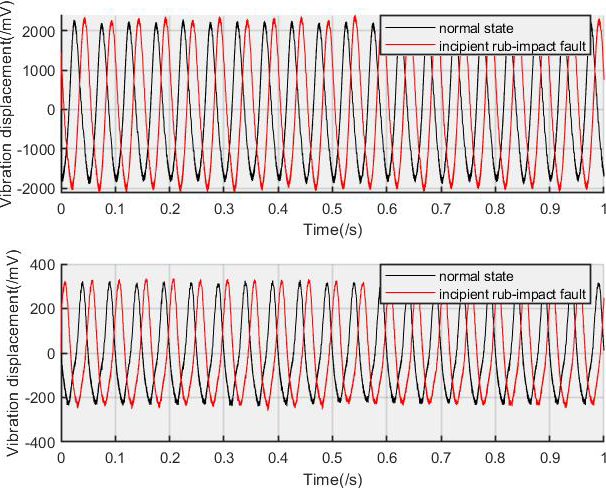 Figure 2Time-domain waveform of the normal state and incipient rotor rub-impact fault.