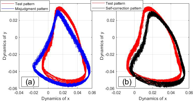 In the verification phase, the misjudgment (Fig. 14a) and self-correction (Fig. 14b) of slight rub-impact faults as shown in Fig. 14 in the mixing-matrix result with Classifier 13. Six slight rub-impact faults are recognized as the normal pattern. In order to analyze the misjudgment results, the self-correction mechanism is illustrated based on the fault dynamics comparison. According to the smallest Euclidean distance, the self-correction is illustrated in Fig. 14b. It can be seen that one of the misjudgment slight rub-impact faults has been re-identified as the correct pattern. The dynamics comparison of the system rub-impact faults can greatly increase the interpretability of the diagnostic process.