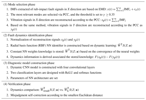 The diagnostic platform of the proposed method is shown in Fig. 3, and the detailed diagnostic algorithm is shown in Table 3. It includes four phases: the mode selection phase, the fault dynamics identification phase, the diagnostic model construction phase, and the verification phase.
