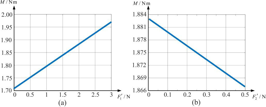 The maximum value of the motor driving torque of the single-pendulum spherical robot is mdgl. As can be seen from Eq. (30), the larger the overall mass of the RPSR, the greater the driving torque required for the motor. Similarly, the rotor mechanism will also affect the driving torque required when the robot crosses an obstacle, imposing higher requirements on the motor driving torque. Figure 14 shows the influence of the rotor mechanism on the driving torque of the RPSR. At this time, the radius of the polyhedral spherical shell R = 0.2 m, and the obstacle-crossing height h = 0.02 m.
