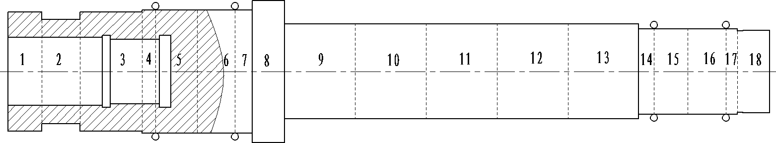In order to study the dynamical characteristics of the motorized spindle system, the dynamical mathematical model of the system should first be established. In this paper, the dynamic model of the motorized spindle system is established by using the finite element method. The spindle unit is discretized, and each element is regarded as a Timoshenko beam element, which considers the shear effect. Figure 1 is the finite element partition diagram of the rotor-bearing system. The rotor is divided into 18 elements and 19 nodes, and each node has 4 degrees of freedom. Among them, nodes 5, 7, 15 and 17 are the location of the support bearing.