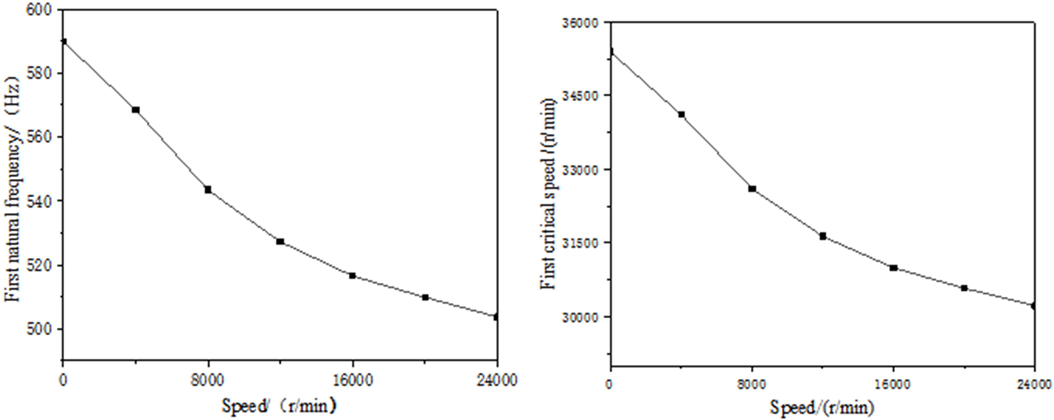 At high speed, the change of comprehensive stiffness of the ACBB directly affects the overall stiffness of the system and then influences the dynamic characteristics of the system, such as natural frequency and critical speed.