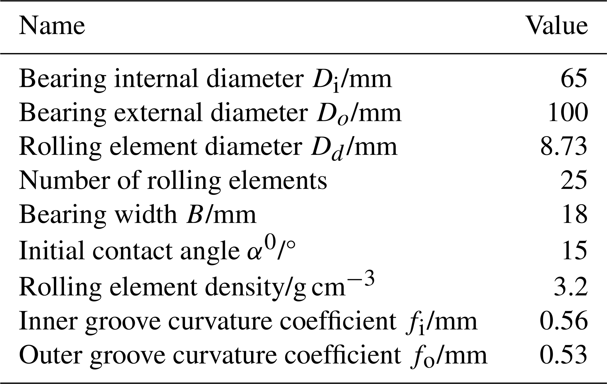 where ui, uo and ub are the thermal deformation of the inner ring, outer ring and rolling element, respectively; and αi, αo and αb are the thermal expansion coefficient of the inner ring, outer ring and rolling element materials, respectively. ΔTi, ΔTo and ΔTb are the inner ring, outer ring and rolling temperature rise, respectively; and di, do and db are the diameters of the inner ring, outer ring and rolling element, respectively.