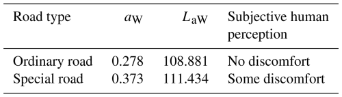The aforementioned RMS values of acceleration and the total weighted vibration level both influence the subjective comfort perception of passengers. However, different individuals exhibit slight variations in their sensitivity to vibrations. Therefore, it is necessary to determine values that are suitable for most people. The relationship between the vibration perception of the majority of people and the two indicators mentioned above is shown in Table 3.
