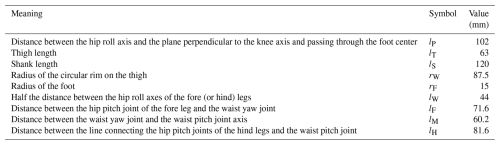 Wei, Z., Song, G., Sun, H., Qiao, G., Qi, Q., He, M., and Song, A.: Kinematic modeling and trotting gait planning for the quadruped robot with an active spine, Journal of Southeast University (Natural Science Edition), 49, 1019–1025, https://doi.org/10.3969/j.issn.1001-0505.2019.06.001, 2019 (in Chinese with English abstract).