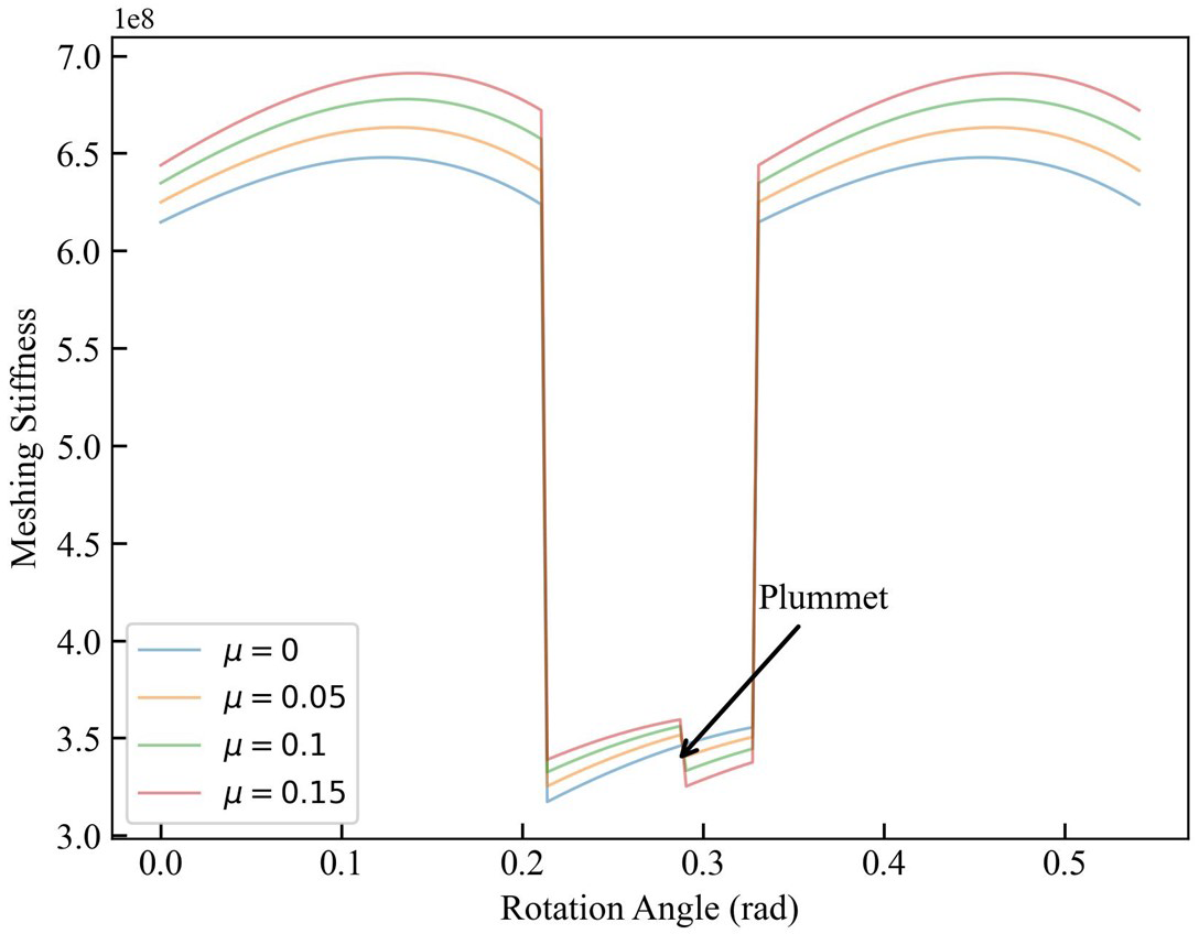 In the TVMS, friction served as a new excitation source, and the direction of the frictional force was reversed at the pitch circle, resulting in a step decrease in stiffness. This phenomenon became more pronounced as the COF increased. The alternating meshing of single and double teeth had a greater impact on the stiffness than the switching value generated by the frictional force.
