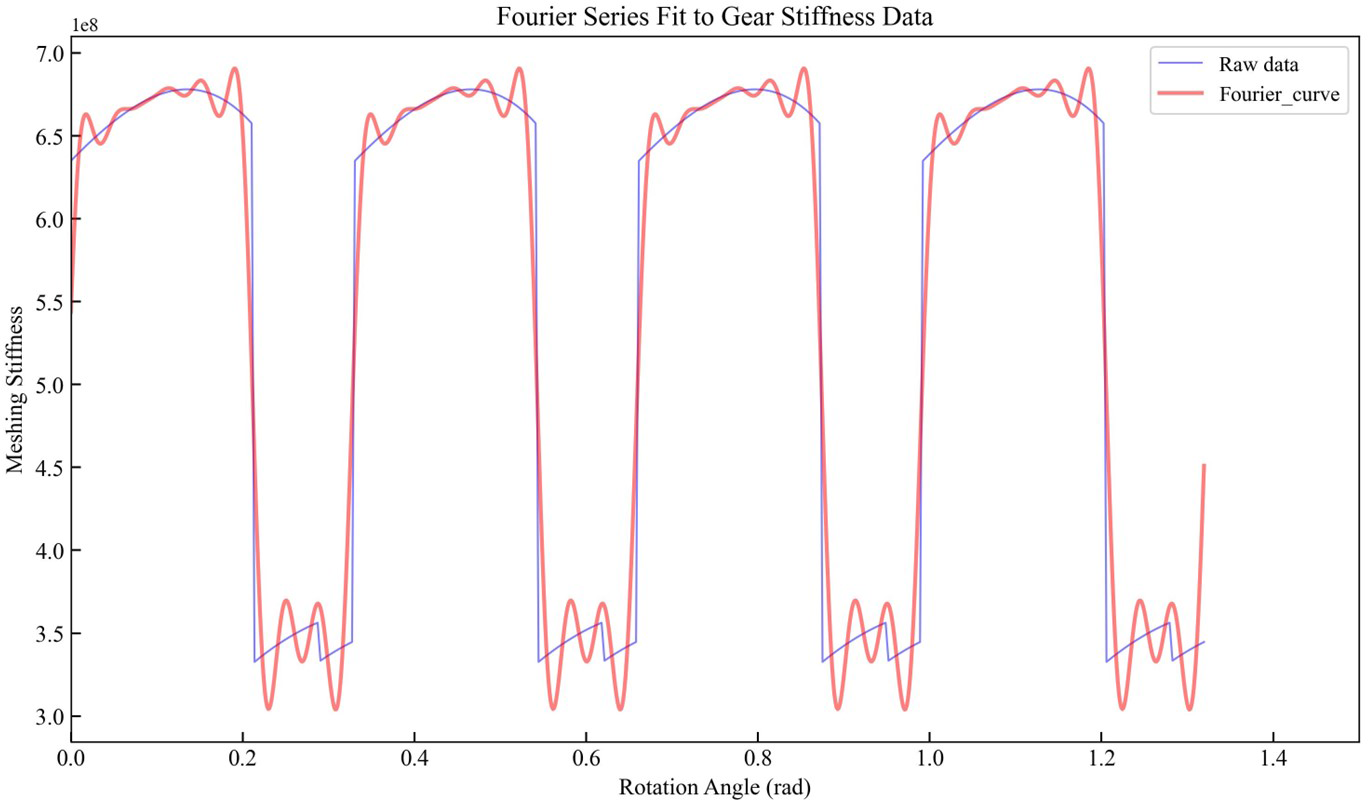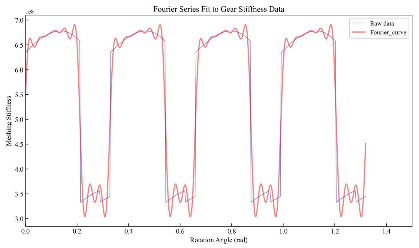 The TVMS of the gear system was fitted using a high-order Fourier transform. The FTTVMS was calculated using the values of ai and bi listed in Table 2. The relative error in the fundamental frequency was 0.2183 %.