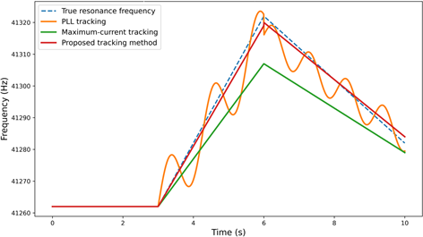 Compared with sweep-based resonance searching, the proposed method estimates the resonance direction from admittance variation and converges to the series resonance frequency using only two frequency transformations, thereby reducing searching time and suppressing unnecessary frequency oscillations.