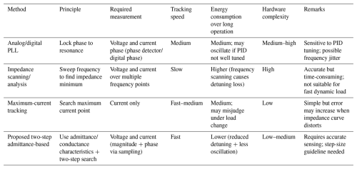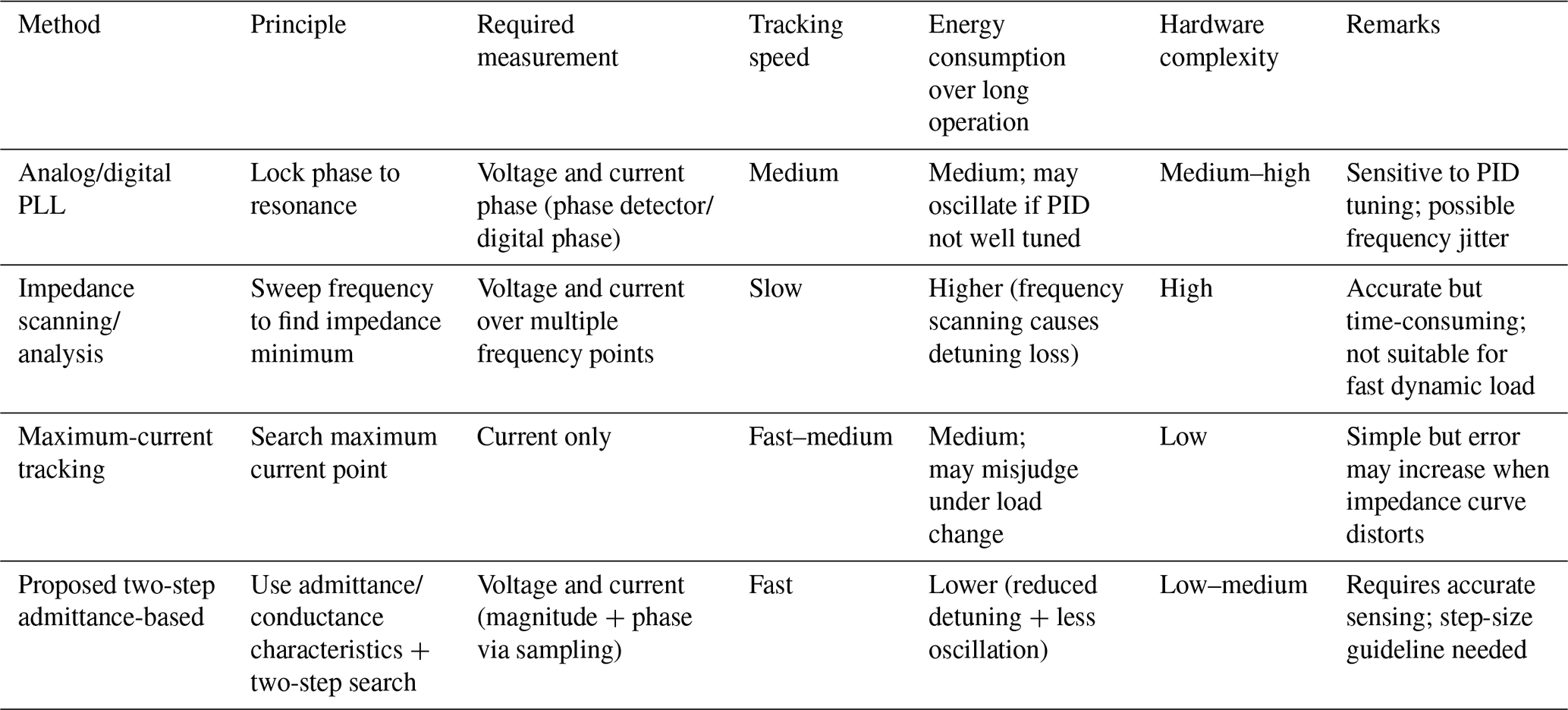 Table 3Comparison of resonance frequency-tracking methods for ultrasonic power supplies.