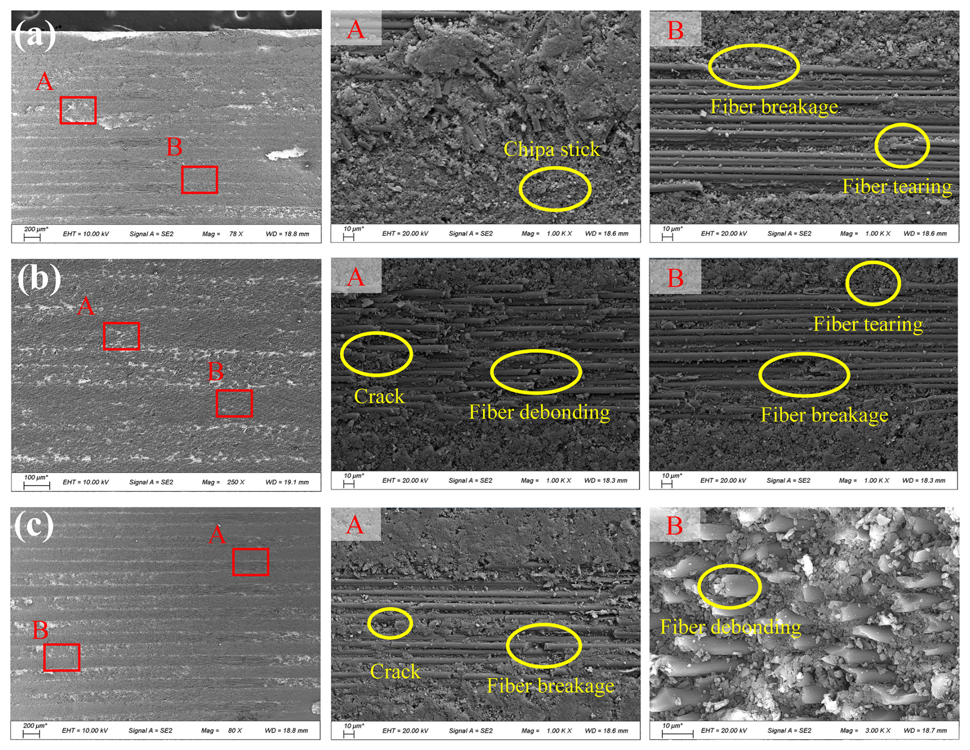 Figure 5SEM morphology of hole wall processed by RUD (a) 3000 r min−1, (b) 5000 r min−1, and (c) 7000 r min−1.