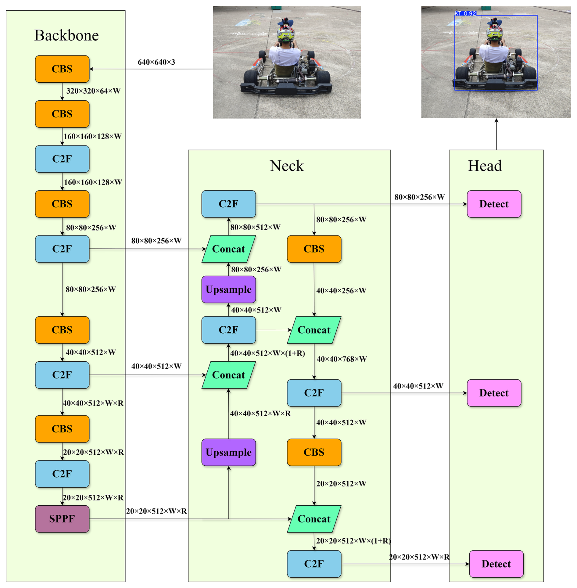 The kart is a high-speed mechanical system for racing. It imposes stringent requirements on real-time visual perception for applications including safety monitoring and race analysis (Anggrainy et al., 2024; Matsumura et al., 2011). In these scenarios, severe motion blur, rapid scale variations, frequent occlusion, and complex backgrounds significantly increase detection difficulty, while deployment on mobile or edge devices further constrains model complexity and computational cost. Achieving an effective balance between accuracy, real-time performance, and lightweight deployment therefore remains challenging in high-speed dynamic environments.