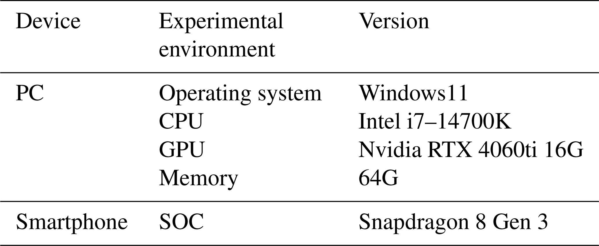Table 1Experimental environment configuration.