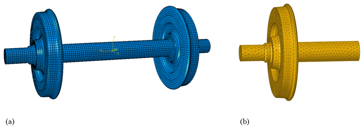 To investigate the influence mechanism of the wheel polygon amplitude and order on the wheel–rail force and wheel sound radiation in metro lines, this section establishes FEM (wheelset) and BEM (wheel). It calculates the corresponding wheel–rail force under different polygon amplitudes and orders, as well as under curved and straight conditions. A comparative analysis is conducted on the effect of polygon amplitude and order, along with curved and straight conditions, on wheel sound radiation.